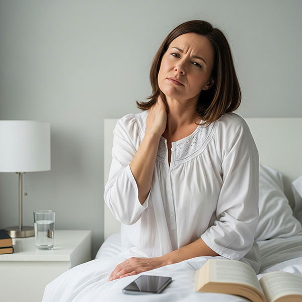 So, what is actually the source of the pain? In most cases, there is an issue with the neck joints or the neck muscles due to prolonged positions. Our neck joints don’t like remaining in any position for extended periods. In Nicole’s case, she first noticed her pain in the morning, which may have been related to her neck position while sleeping. It is also important to note that in Nicole’s case, the first sign of any issue was in the morning when she woke up, unrelated to stress.