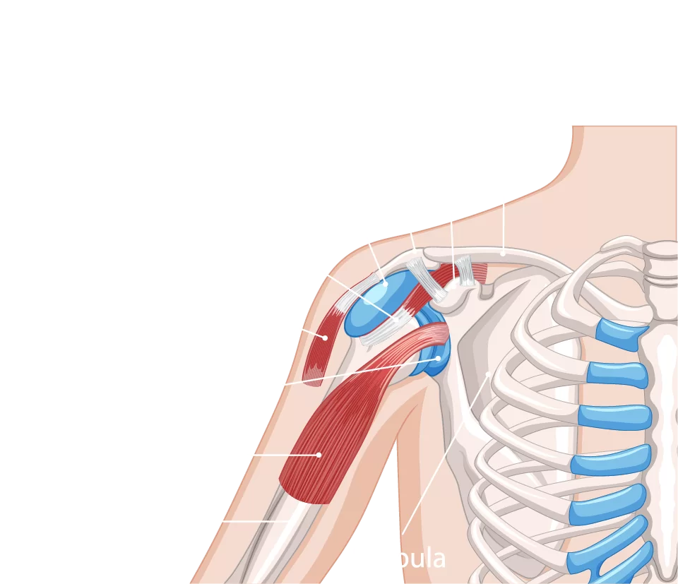 Your shoulder is an incredibly complex ball-and-socket joint with several moving parts, including: